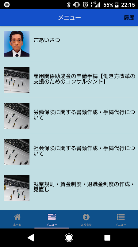 程序还对社会保险和劳动保险等(听证会,访谈等),仲裁索赔的过程中,如咨询(面谈,面谈等)此外,如涉及到雇佣关系补贴(访谈,访谈等),程序和残疾抚恤金咨询支持将很乐意提供帮助。它提供了诸如定期有用的信息。 (推送通知),或者,我希望大家都能够看到,比如“常见问题解答”。请使用一切手段。
