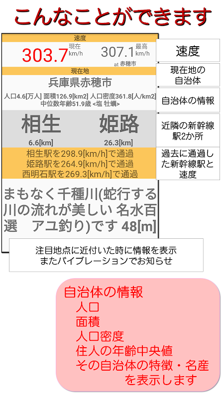告知您当前的行驶速度、最高速度以及您刚刚经过的车站的速度。