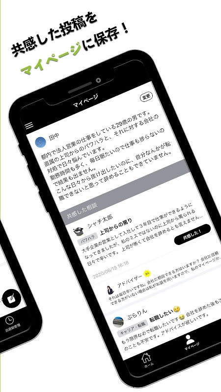 他人の投稿を保存する機能もあり、似ている悩みをもつ投稿をマイページにストックすることが可能です。