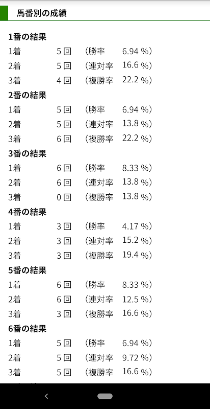 此外,还会显示每个马号的获胜百分比指数,并添加马号和受欢迎程度。