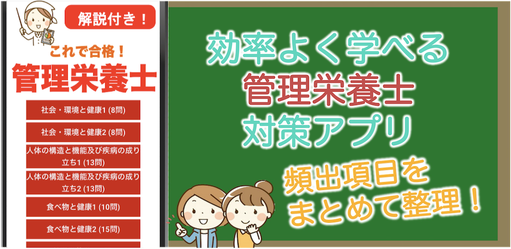 这是一款注册营养师对策应用程序,可让您在业余时间解决问题并学习。