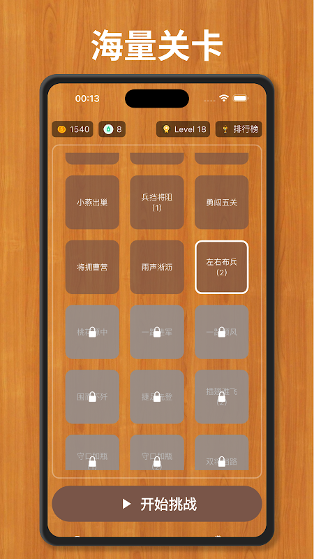 学习与娱乐并重,这款华容道游戏将带给你全新的体验。除了经典的华容道玩法,游戏还加入了答案步骤预演功能,让你在解谜的同时,还能学习到更多的解题技巧。无论是孩子还是成人,都能从这款游戏中受益匪浅。