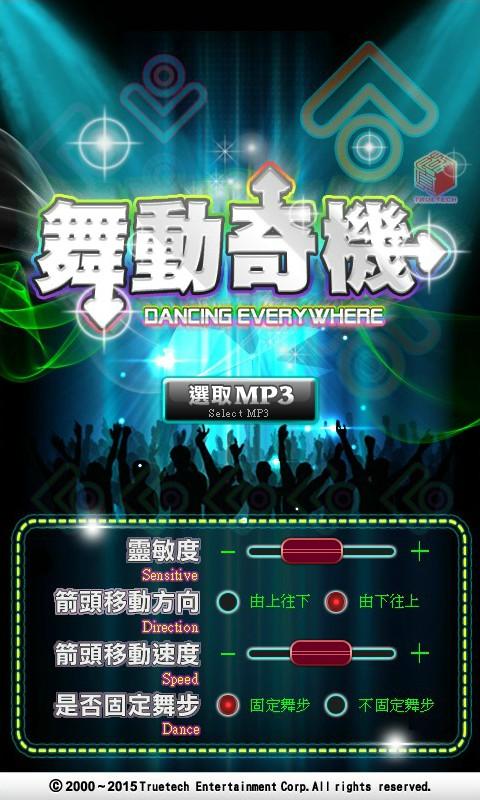 您是否在購買一般市售跳舞機的時候,常常遇到裡面只附幾首固定歌曲的情況?就算是將樂曲燒錄在硬體裡面也只能提供數目有限或版權過期的陳年老歌而已?沒有辦法好好享受您心愛的歌星最新的作品?在『舞動奇機』中,我們著手解決了困難的運算問題與技術瓶頸;做出可以讓您可以自行把想要的聲音播放出來跳舞,永遠不再受限於軟體內附的幾首音樂的限制!