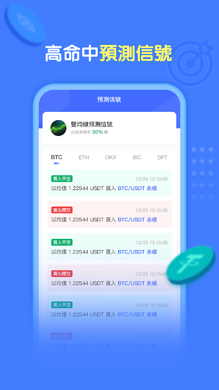 1、提供多种个性化交易策略、各种套利策略、双均线策略、布林带策略,为适应不同的市场行情,华登量化支持牛市、熊市、震荡市的多种量化交易策略,量化机器人7*24小时无间断地执行,支持比特币、以太坊、瑞波币等数百种加密数字货币和100+种期货合约,通过科学的研判分析,使量化收益更可靠。