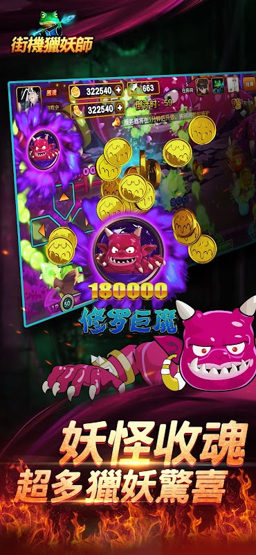 在游戏中您将扮演猎妖师,挑战各种强大的怪兽,收获丰厚的奖励,兑换各种道具,大招连发横扫全场!还重现电玩游戏厅推币机的经典!如果你喜欢魔幻题材的游戏,猎妖师游戏绝对值得你一试!