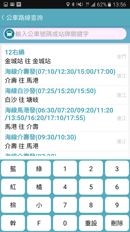 本APP提供金门,澎湖及马祖公车路线查询