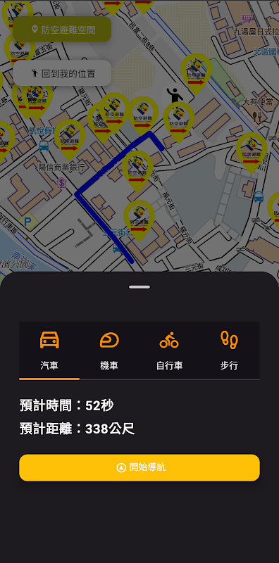 完全离线显示附近避难图标,并且可离线导航、通讯