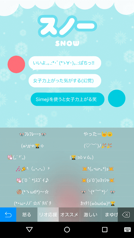 Simeji(日本語文字入力&顔文字キーボード)のきせかえテーマ「スノー」です。