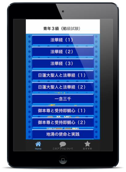 すきま時間を活用して青年教学3級試験の勉強ができる無料のアプリです。問題数も多く大変充実した内容となっております。