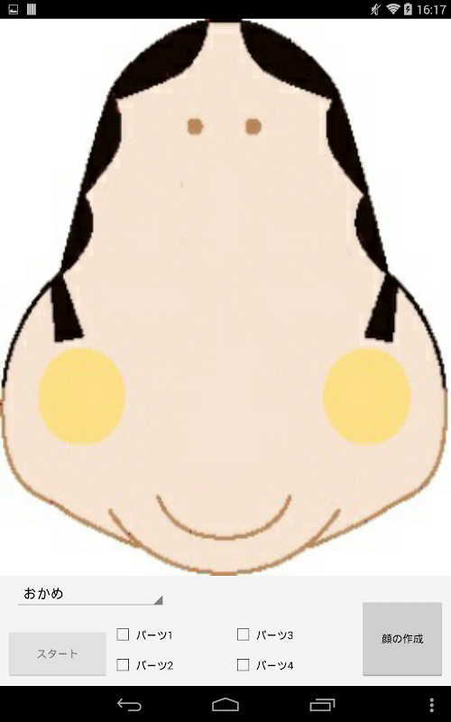 福笑游戏。以外的三个面的默认,它可以通过添加容易发挥面对从由摄像机捕获的面部/终端的图像。结果我的脸可以保存在终端。