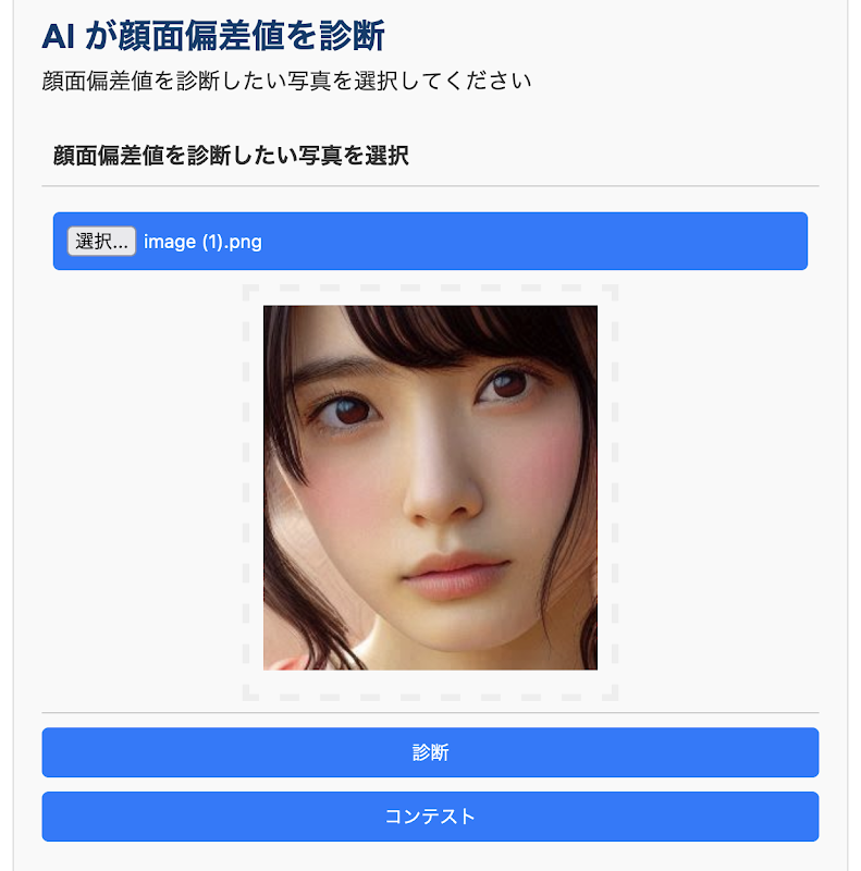 只需上传一张图片,利用AI技术即可诊断出人的面部偏差值!一个数值,显示您的外表与常见美容标准的接近程度。