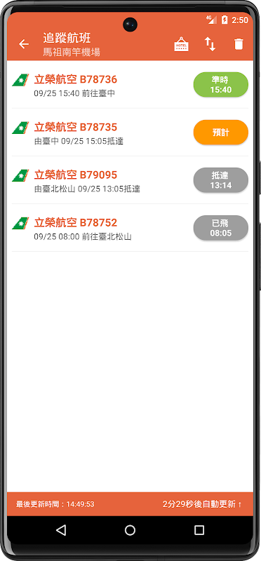 支援马祖机场(马祖南竿航空站/马祖北竿航空站)班机即时状态追踪查询