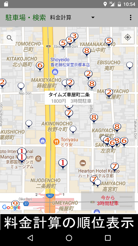 注册最多的停车场!从约9万个停车场中进行搜索。模拟费用,并按从低到高的顺序显示在地图上。