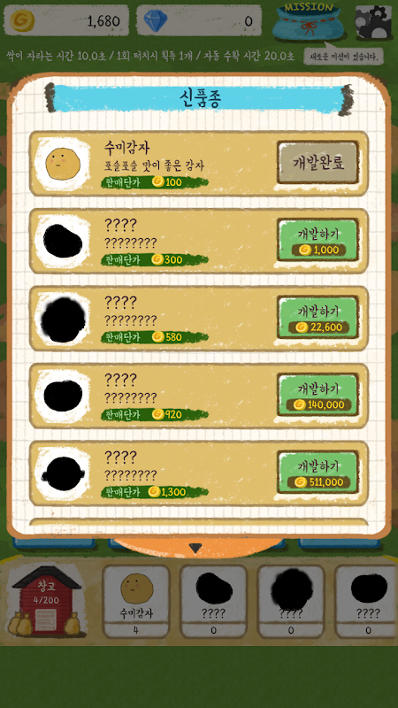 *。通过升级您的工具和设施,更快地赚取土豆。