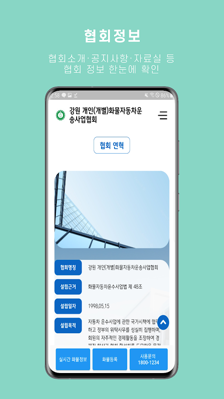 ■ 江原道个人(个人)货物运输业协会网站的主要服务已经实现为应用程序,以便可以在移动设备上使用。