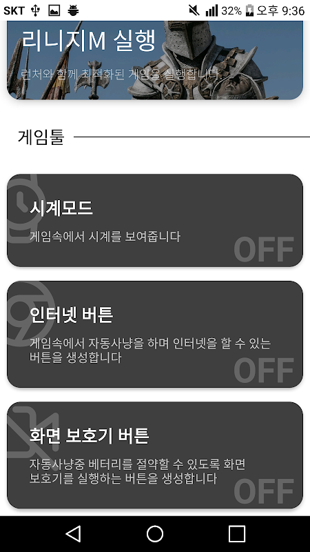 关于게임툴(리니지M) - 발열 최소화, 게임 최적화 툴