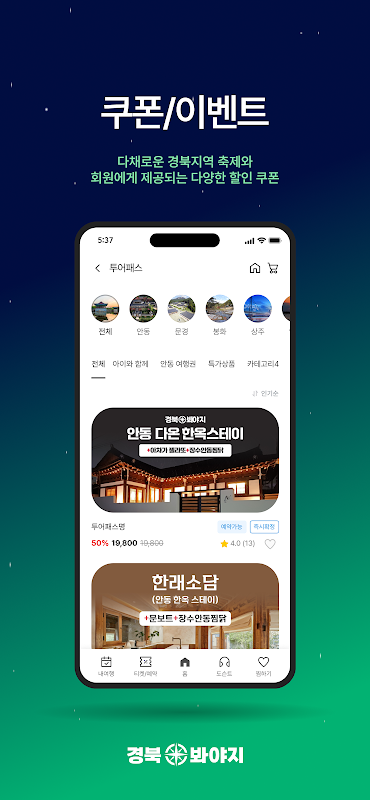住宿:我们提供庆北地区 700 多家住宿的信息。使用庆北Boyaji会员提供的优惠券可以低价使用住宿预订服务。
