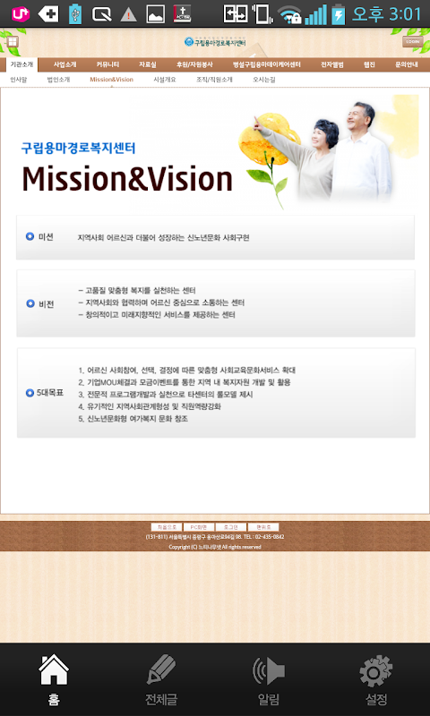 * 푸쉬 알림메시지 자동발송: 홈페이지에 게시물, 사진, 동영상이 신규 등록 될 경우에 자동 알림 메시지를 받을 수 있습니다. 사용자가 원하는 게시판만 선택하여 수신이 가능하며, 전체 공지 발송도 가능합니다.