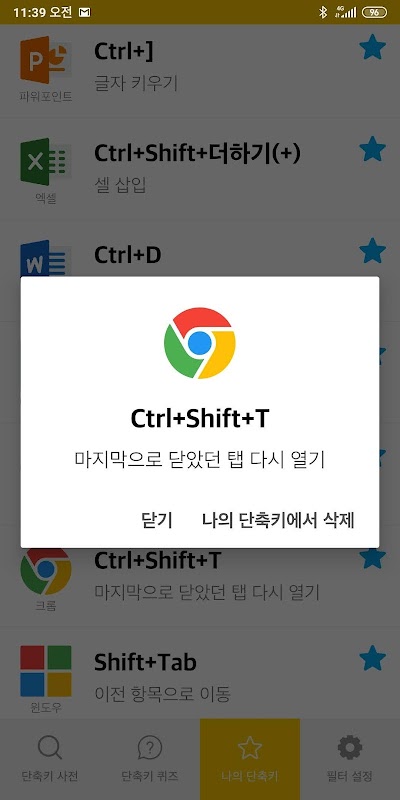 国家快捷键是一个应用程序,可让办公室工作人员方便地搜索PowerPoint,Excel,Word,韩文Hangul,Chrome和Windows中经常使用的快捷方式。实际上,它是根据从业者的角度方便使用而开发的,它是由经常写文档的上班族开发的(x100)。