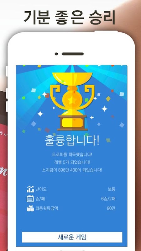 적절한 난이도를 선택해서 가볍게 즐겨보세요. 또는 진정한 긴장을 느낄 수 있는 어려운 난이도에 도전해보세요. 수준별 난이도는 게임 레벨에 따라 잠금 해제되며 게임머니는 난이도와 관계없이 적립됩니다. 모든 수준별 난이도는 클리어 시 트로피를 제공합니다. 단 수준이 높은 난이도는 판돈 금액도 커지니 주의하세요. 모든 수준별 난이도를 섭렵하고, 특별한 트로피와 많은 재산을 모으는 것은 오직 당신의 실력에 달려 있습니다!