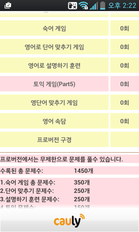 영숙어,영단어를 문제화하여 반복적으로 연습을 할수 있게 하였으며,