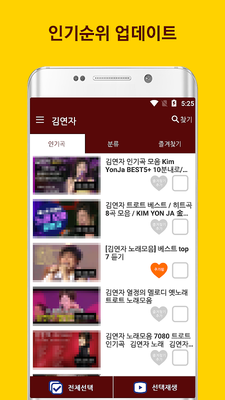 김연자가 부른 수많은 대표 인기곡 전곡을 편리하게 감상