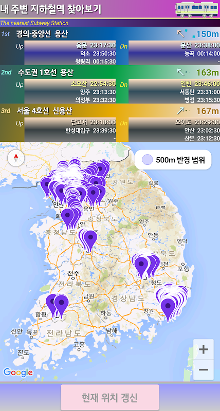 -如果您触摸地图上显示的每个标记,则会显示相应地铁站的名称和距离。