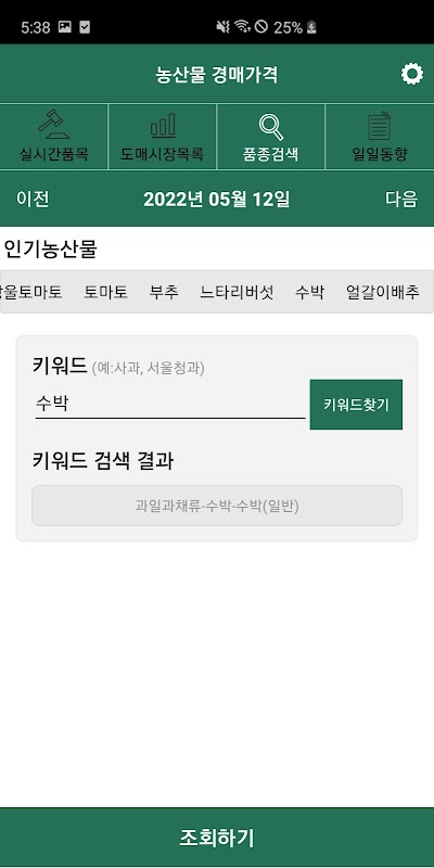 농산물 경매가격 - 실시간 경락가격 조회 1.2