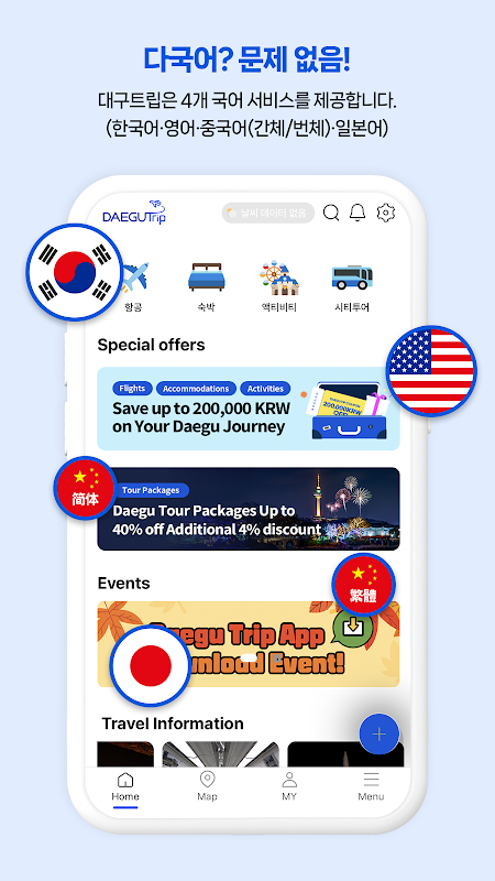 大邱之旅提供韩语(英语-中文(简体/繁体)-日语)等5种语言