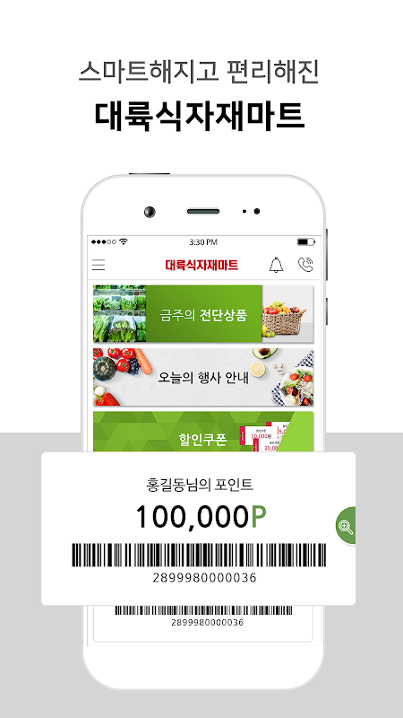 - 대륙식자재마트의 포인트 카드를 모바일로 편리하게 이용하시고, 언제 어디서든 포인트를 확인하실 수 있습니다.
