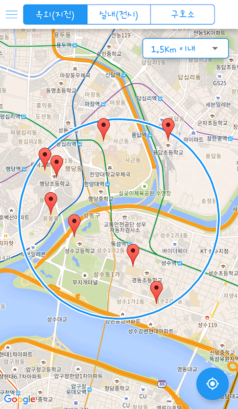 어플리케이션 내의 대피소 DB를 이용하여 대피소 위치를