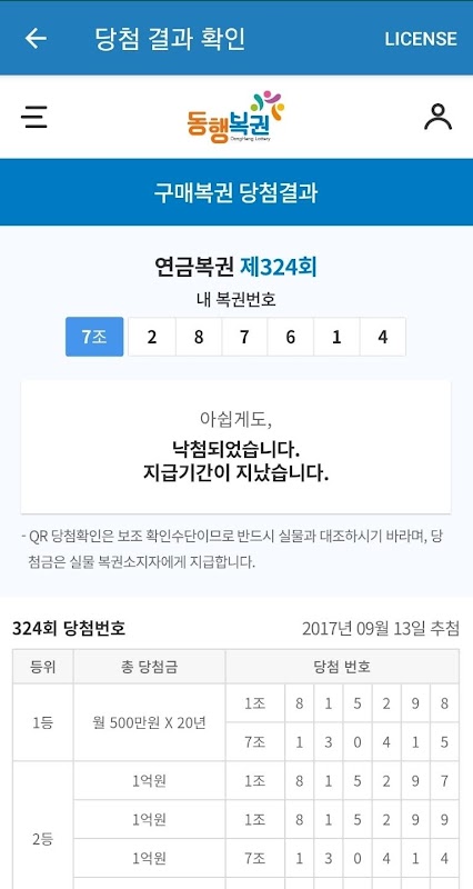 3) 이동된 창을 통해서 당첨 결과를 확인합니다.