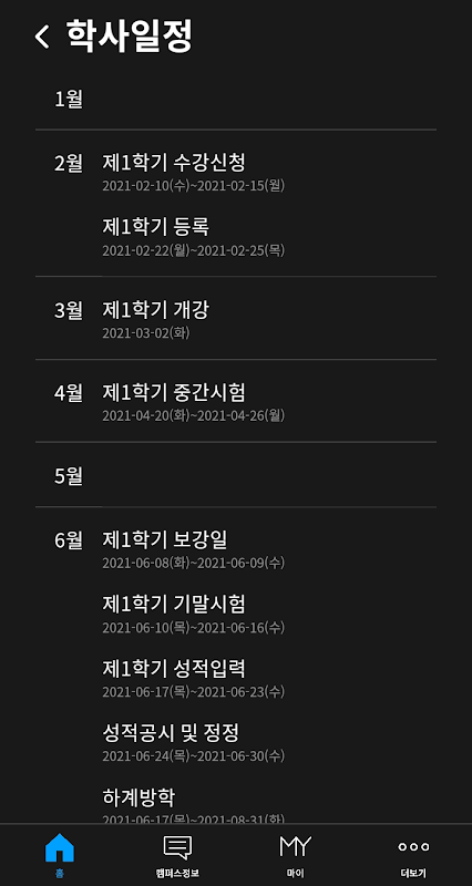 -在东亚大学学生信息系统(student.donga.ac.kr)的功能中,在移动环境中提供以下四个功能。