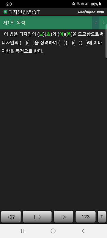 - 조문의 주요 키워드를 순차적으로 ‘숨김/표시’ 하여 암기효과 향상