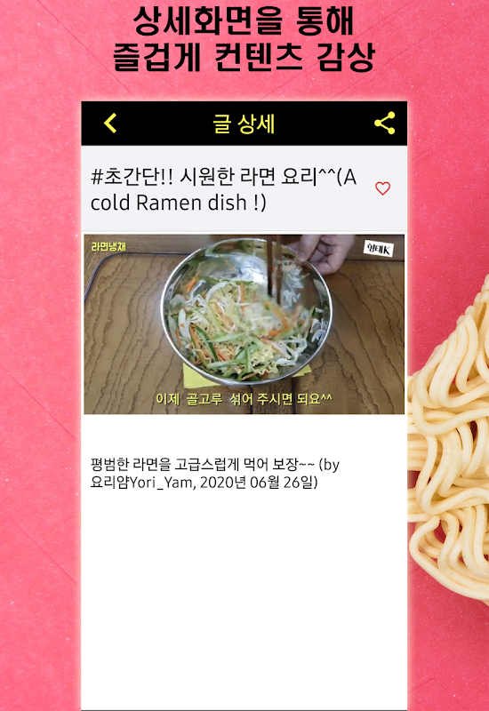 라면에 대한 모든 것(요리, 먹방, 레시피, 맛집, 문화, 역사)을 2000 여개 콘텐츠로 만나보세요.