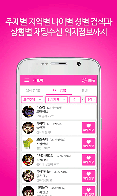 나이별 지역별 조건을 통해 만남이 이루어집니다.