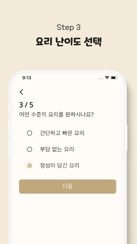재료, 예산, 난이도, 취향 조건 입력 지원
