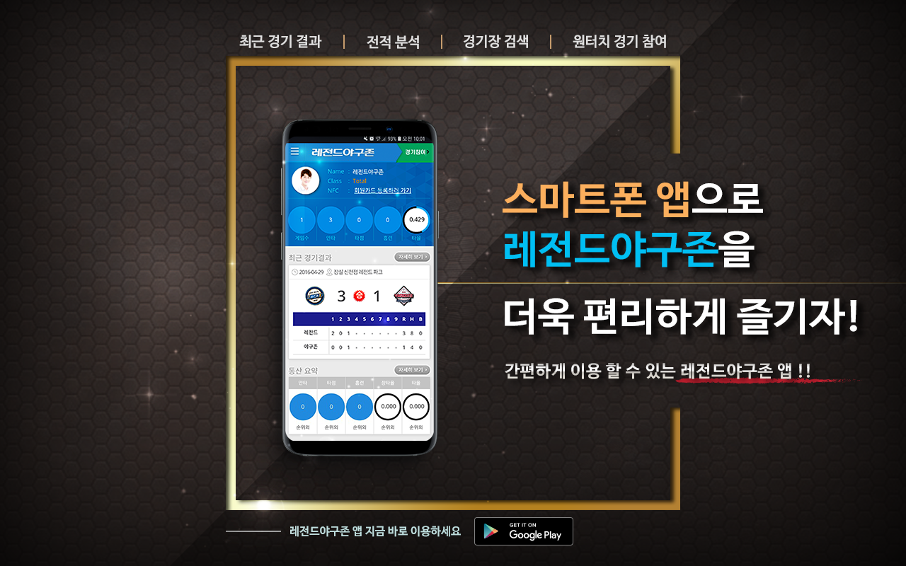 !! 레전드야구존 안드로이드앱 전격 리뉴얼 단행!!