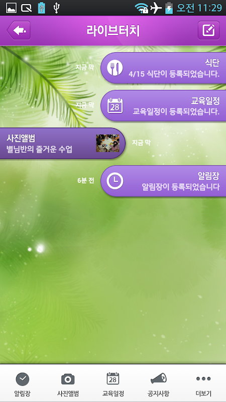 알림장, 사진앨범, 교육일정, 식단의 주요기능 뿐만 아니라