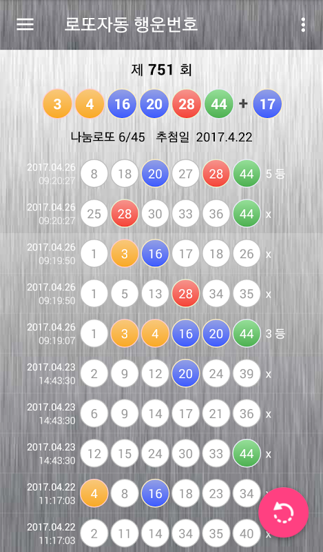 로또자동 행운번호 : 로또 당첨번호 자동 반자동 생성 1.6.4