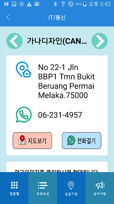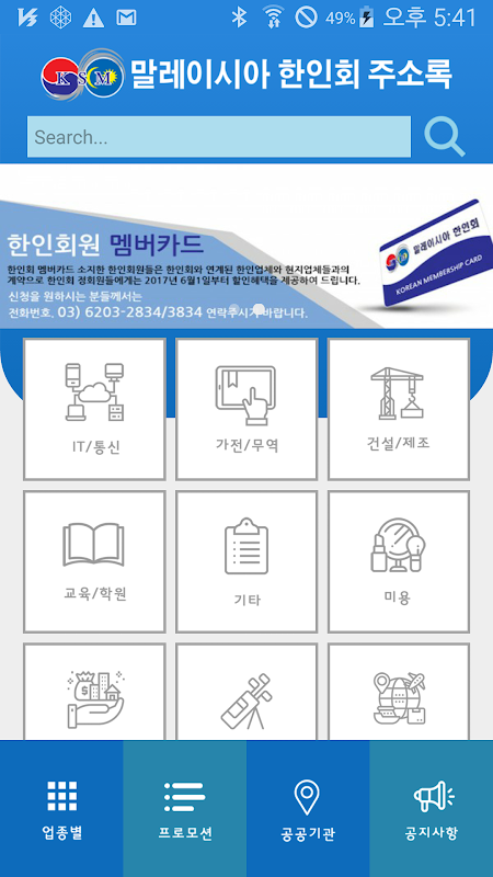 马来西亚大韩民国协会的通讯录应用程序还提供了联系方式和企业地图。
