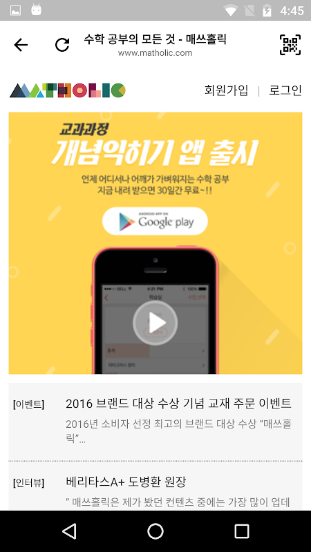 APKPure 使用签名验证功能,确保为您提供无病毒的 매쓰홀릭 - 학생(동영상 플레이어, QR, 학습번호) APK 下载。