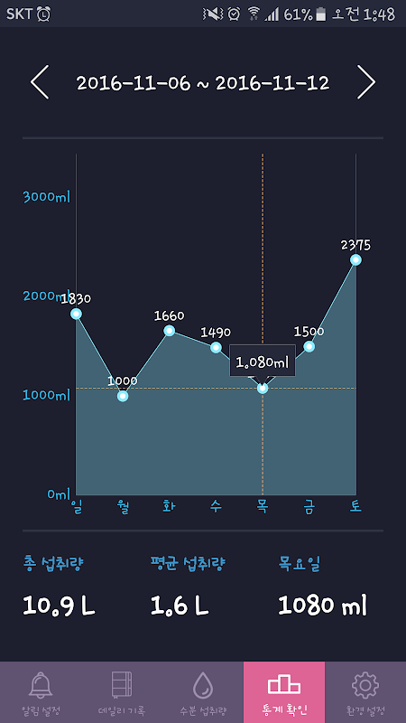 - 你可以一目了然地发现每天的液体摄入量的可视化表示。