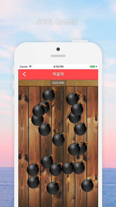 간단하면서 재미있는 6가지 게임(폭탄, 병돌리기, 손병호게임, 복불복, 마개돌리기, 왕게임)으로 구성하였습니다.