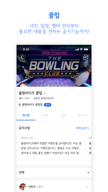 볼링장 검색부터 대기예약, 스코어 관리, 단계별 전문 강습과 저세교정, 클럽 맞춤 커뮤니티,