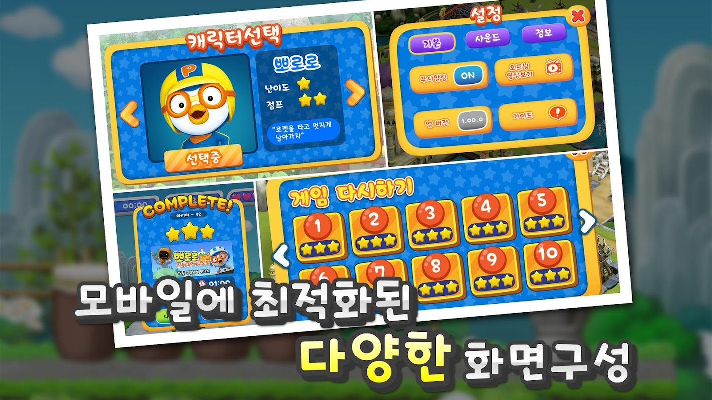 - 스토리텔링 형식의 게임으로 재미있는 뽀로로의 모험을 즐겨 보세요.