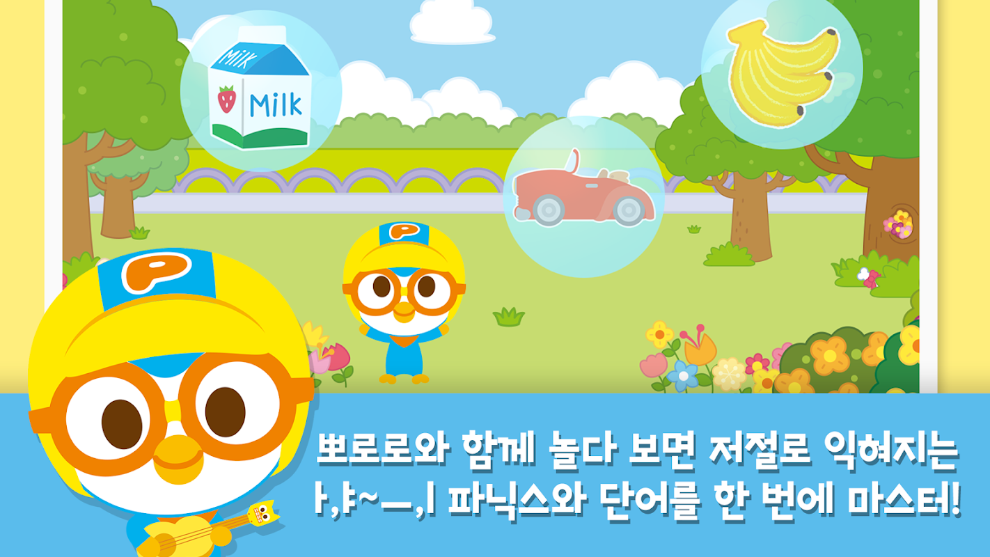 •当你和Pororo一起玩时,你会自动学习韩语单词ㅏ~ㅣ