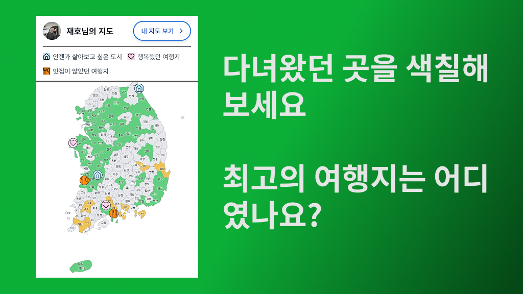 - 设定目标:今年,挑战自己完成庆尚道!- 分享:在社交媒体上展示您的个性化旅行地图