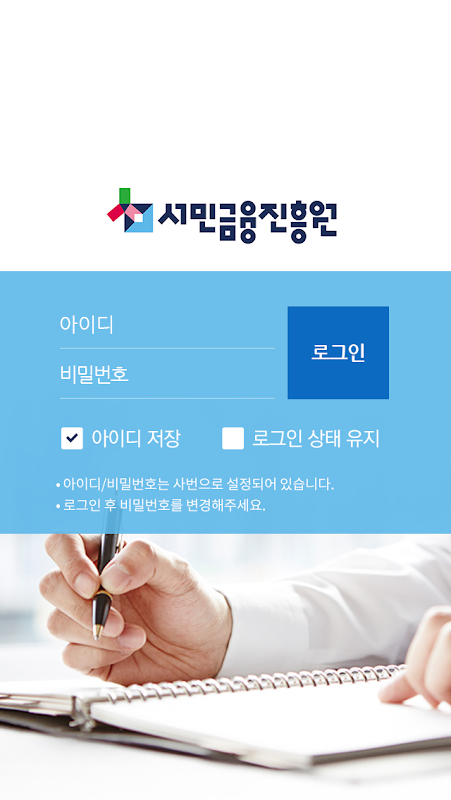 PC환경의 서민금융진흥원 사이버 연수원(http://kinfa.hunet.co.kr)의 아이디와 비밀번호로 로그인 가능하며, 주요 서비스를 본 모바일 앱에서도 사용하실 수 있습니다.