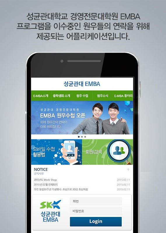 商学院EMBA(高级工商管理硕士)的成均馆大学研究生院可用于Wonwoo接触的yisujung的应用程序,你只能使用注册的学生。